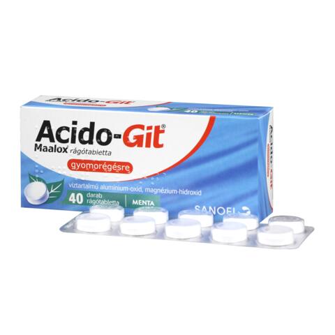 Az Acido-Git Maalox rágótabletta 125 mg szorbitot és kb. 0,2 g szacharózt tartalmaz.