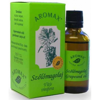AROMAX SZŐLŐMAGOLAJ Az olaj könnyű szerkezetű, jól felszívódik a bőrbe. Más zsíros olajokkal jól társítható, de bőr- és testápoló alapolajként önmagában is jól alkalmazható. Terhességi csíkok és narancsbőr kezelésére is ajánlják a használatátSzőlőmagolaj (Vitis vinifera). A szőlőmagból készített, könnyű szerkezetű, a bőrbe jól beszívódó olaj használatát önmagában vagy testápoló olajok alapolajaként ajánljuk. A szőlőmagolajat normál és zsíros bőr ápolására ajánljuk. Napérlelte szőlőszemek magvából, hidegsajtolással kinyert, zöldessárga színű, jellegzetes szőlő illatú olaj. A szőlőmagolaj gazdag bioaktív, antioxidáns anyagokban, bioflavonokban, telítetlen zsírsavakban, linolsavban (az F-vitamin egyik alkotója) klorofillban. Magas az E-vitamin tartalma (8-10 mg/100g, ami más olajféléknél magasabb). A szőlőmagolaj rendkívül erős antioxidáns hatással rendelkezik, ugyanis az antioxidáns hatása 18,4-szer jobb, mint a C-vitaminnak, és 50-szer nagyobb, mint az E-vitaminnak.