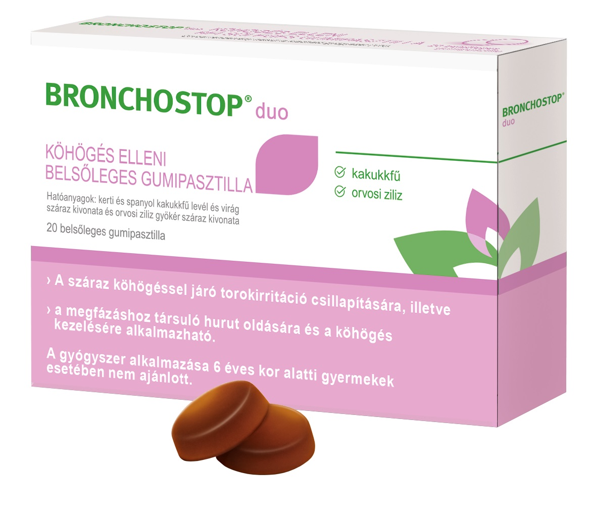 BRONCHOSTOP Duo köhögés elleni belsőleges gumipasztilla