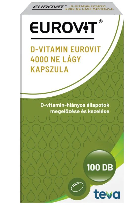 A D-vitamin Eurovit 4000 NE lágy kapszula hatóanyaga a kolekalciferol (D3-vitamin), amely alapvető szerepet játszik a szervezet kalcium- és foszfor-anyagcseréjének szabályozásában. Serkenti a kalcium felszívódását a bélrendszerből és elősegíti annak beépülését a csontszövetbe. Alkalmazása felnőttek számára javasolt a D-vitamin-hiány megelőzésére és kezelésére, amely állapotok csontlágyuláshoz vagy csontdeformitásokhoz vezethetnek. Emellett kiegészítő kezelésként szolgálhat csontritkulás (oszteoporózis) esetén azon betegeknél, akiknél fennáll a vitaminhiány kockázata. A készítmény magas hatóanyag-tartalma miatt 18 év alatti gyermekeknek nem adható. Az ajánlott fenntartó adag általában kétnaponta egy kapszula, ami napi 2000 NE bevitelnek felel meg.