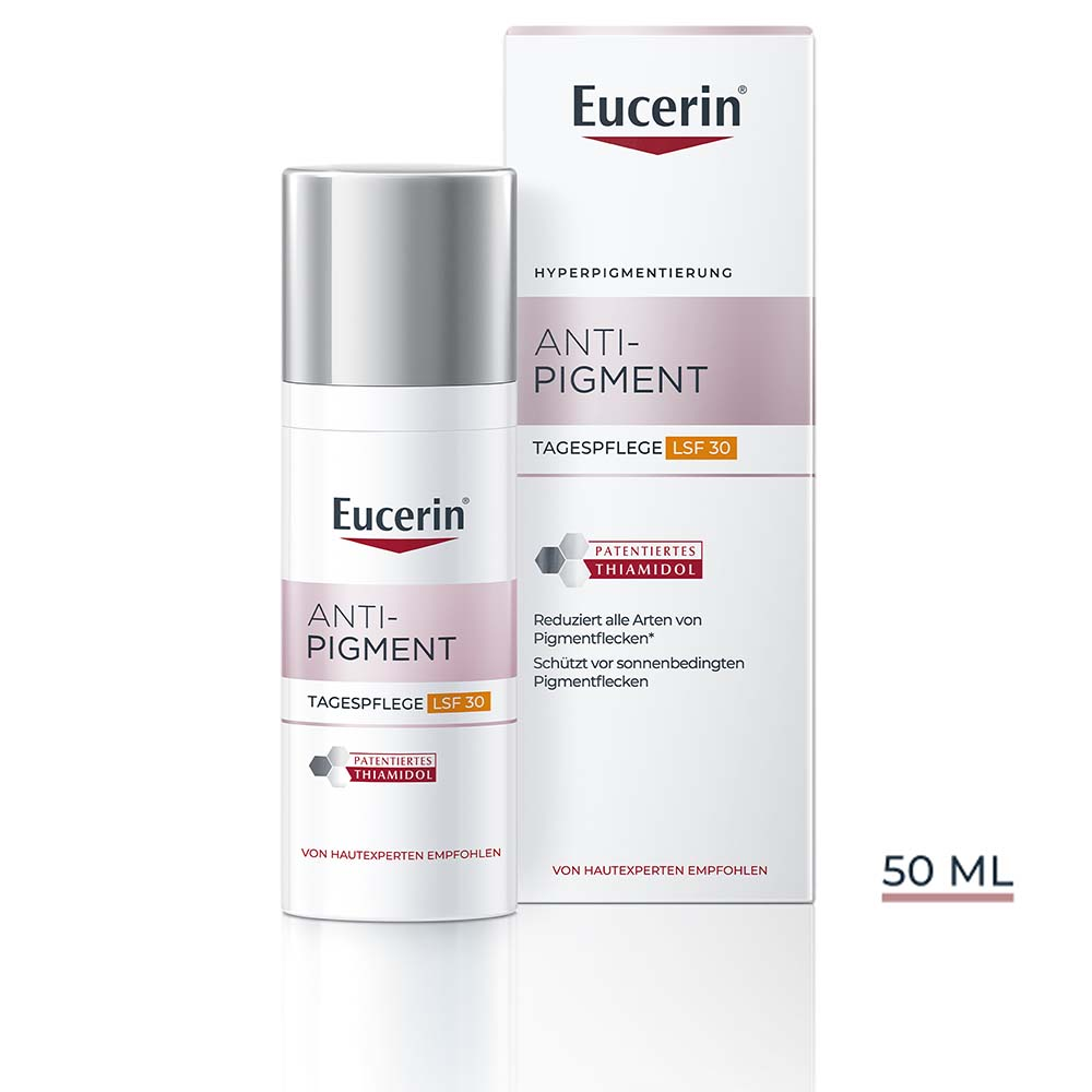 A hiperpigmentációs bőrproblémák csökkentésére.Az UV-sugárzás, a hormonális változások és az oxidatív stressz a bőr túlzott melanin termeléséhez vezethet. Pigmentációs foltok, sötét elszíneződések, öregedési foltok és szeplők alakulhatnak ki, amely által a bőr egyenetlen színűvé és fakóvá válik.Innováció:Az Anti-Pigment nappali arckrém FF30 termék thiamidol hatóanyaga segít csökkenteni a melanin termelést és egyenletesebbé tenni a bőr színét.30-as fényvédő faktor segít megelőzni az újabb pigmentfoltok kialakulását és egyben óvja a bőrt az idő előtti bőröregedés látható jelei ellen.Használati javaslat:Használja minden reggel.Naponta maximum négyszer alkalmazzon thiamidol tartalmú terméket.Vigyázzon, hogy a termék szembe ne kerüljön!A termék 4 hetes rendszeres használata után a bőr színe egyenletesebbé válhat, tónusa ragyogóbb lesz alap bőrszíntől függetlenül.A rendszeres használat során a bőr tónusa folyamatosan javul. Klinikai vizsgálatok szerint a termék segítheti a pigmentfoltok halványodását és hozzájárulhat az újabb pigmentfoltok kialakulásának megelőzéséhez. Az arckrém bőrbarát összetételű.