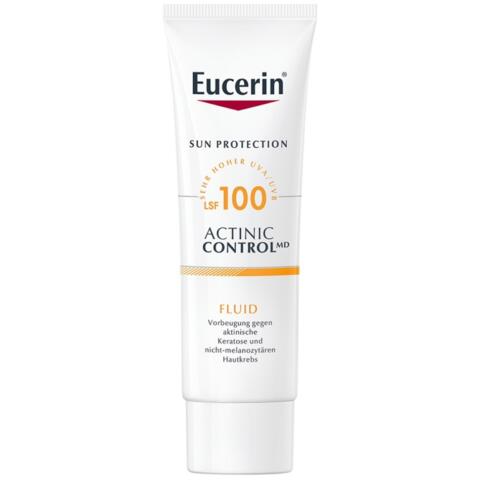 Eucerin® Actinic Control napozó fluid MD* SPF 100 egy orvostechnikai eszköz, melyet az aktinikus keratózis és a nem melanóma típusú bőrrák (NMSC) megelőzése, valamint az aktinikus keratózis terápia kiegészítő kezelése céljából fejlesztettek ki.Az aktinikus keratózis a bőr külső rétegének túlszaporodása és megvastagodása folytán keletkezik, lehet lapos vagy a bőr felszíne felé kiemelkedő, pikkelyes, lemezes vagy piros foltos heg, illetve seb. Mérete lehet néhány milliméteres, de akár 2 centiméteres is. Elsősorban a világosabb bőrű embereknél jelentkezik, illetve azoknál, akik a munkájuk miatt többet tartózkodnak a szabadban, napsütésben.Felvitel után a bőrön finom filmréteget képez, mely hatékonyan védi a bőrt az UVA- és UVB-sugaraktól. Fizikai és kémiai fényszűrőket tartalmaz, melyek elnyelik, visszaverik, valamint szétszórják a napsugarakat.
