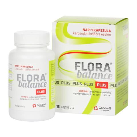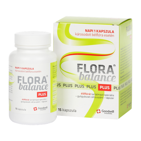 Florabalance® Plusélőflórát tartalmazó étrend-kiegészítő kapszula Nettó tömeg: 7,3 g 15 kapszula A Florabalance® Plus élőflórát tartalmazó étrend-kiegészítő készítmény. Magas csíraszámban hat különböző baktériumtörzset tartalmaz.Összetevők: baktériumtörzs-keverék (Lactobacillus plantarum, Lactobacillus rhamnosus, Lactobacillus bulgaricus, Lactobacillus lactis, Lactobacillus helveticus, Bifidobacterium ssp), zselatin, csomósodást gátló (zsírsavak magnéziumsói). A termék nyomokban laktózt és tejet tartalmazhat.Adagolás: Felnőttek és 7 évesnél idősebb gyermekek számára napi 1 kapszula alkalmazása javasolt.A kapszulát folyadékkal nyelje le. Antibiotikum-kezelés alatt a Florabalance® Plus alkalmazása legalább 3 órával a gyógyszer bevétele után javasolt.Nyelési nehézség esetén javasoljuk a kapszula felnyitását és a benne lévő por feloldását langyos (37 °C-nál nem melegebb) italban és annak azonnali elfogyasztását.