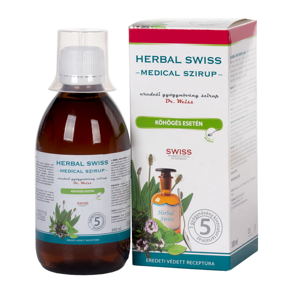 A Herbal Swiss Medical szirup 5 gyógynövény kivonatnak az egyedülálló kombinációja, mely többszörös hatást fejt ki köhögés esetén:enyhíti a köhögést, megnyugtatja az irritált torkot, enyhíti a torokkaparást, enyhíti a torokfájást.