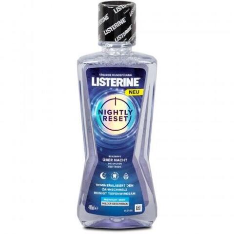 LISTERINE NIGHTLY RESET szájvíz Az éjszaka folyamán veszi fel a harcot a nappali behatásokkal szemben.A napi étel- és italfogyasztás során a cukrokból savak keletkeznek a szájban, melyek ásványi anyagokat vonnak ki a fogakból. Ez sérülékenyebbé teheti a fogzománcot a fogszuvasodással szemben - különösen az éjszaka folyamán.A LISTERINE Nightly Reset szájvíz felveszi a harcot a nappali behatásokkal szemben:A magas fluorid tartalmának köszönhetően hozzájárul a fogzománc ásványi anyag pótlásához - 6x jobban mint a fogmosás önmagában -, az erősebb fogakért.Mélyrehatóan tisztít ott is, ahová a fogkefe nem ér el:- Csökkenti a lepedék-lerakódást - Felveszi a harcot a baktériumokkal - Csökkenti a savképződést - melyek az étel-és italfogyasztás során a cukrokból keletkeznek -, mely gyengíti a fogzománcot.Segít megelőzni a fogszuvasodást.