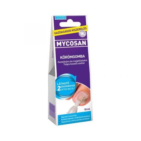 Bioaktív széruma behatol a körömlemezbe és a körömágyig beszívódva a "gyökerénél” pusztítja el a kórokozókat.Stabilizálja a köröm szerkezetét, táplálja és ellenállóbbá teszi a körömágyat.Hatását klinikai vizsgálatok igazolják. Mycosan – egyszerű, gyors és hatásos módja annak, hogy megszabaduljunk a körömgombától.A köröm kezelésére alkalmas komplett kezelő készlet, amely ecsettel ellátott, felhasználóbarát tubusba töltött szérumból, valamint 10 darab, egyszer használatos körömreszelőből áll.A Mycosan harcba száll a körömgomba kialakulásáért felelős gombákkal.A Mycosan egyedülálló, szabadalmaztatott bioaktív hatóanyagot tartalmaz, melyre a szabadalmi jogot bejegyezték.A szer hatása néhány héten belül jelentkezik. A Mycosan-t cukorbetegek és gyermekek is használhatják.