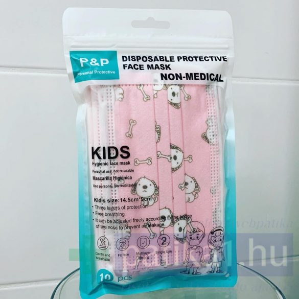 Anyag: polipropilén, nem szőtt textil Súly/réteg: 22gsm- 20gsm - 28gsm Jellemzők: háromrétegű, gumis, orrmerevítővel ellátott, légáteresztőSzín: világoskék Méret:14,5x9cm, gyermek méret.(A minta eltérhet a képen látottól!)