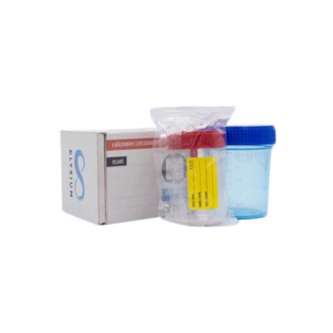 Az Elysium háromrészes, postázható, steril széklettartály készlete kiválóan alkalmas emberi székletből vett minta begyűjtésére, illetve postázására. A készlet tartalma egy postázható doboz, egy külső biztonsági tartály, valamint egy csavaros tetejű mintatartó edény kanállal, mely a felbontásig teljesen steril marad.