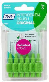 TePe Original fogköztisztító kefék 0,8 mm, zöld, 6 db - a műanyag szigetelésű huzal maximálisan kíméli az ínyt és az érzékeny fognyakakat - rendkívül törésellenálló- lapos nyél a kényelmes és alapos tisztítás érdekében - a blisztercsomagolás tartalma: 6db fogköztisztító kefe + védőkupak.