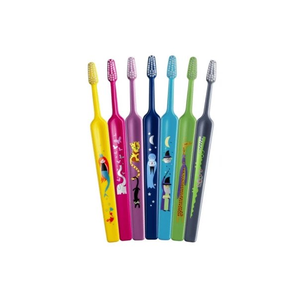 TePe Select Compact Kids fogkefék nem csak gyermekek részére ajánlottak. A kis fej könnyedén elér a nehezen hozzáférhető helyekre is, a puha sörte kíméletes az ínyhez. A fogkefe kis feje háromszögben van kialakítva, 2760 puha sörtével és a fogorvosok által ajánlott egyenes sörtevágással és lapos nyéllel.
