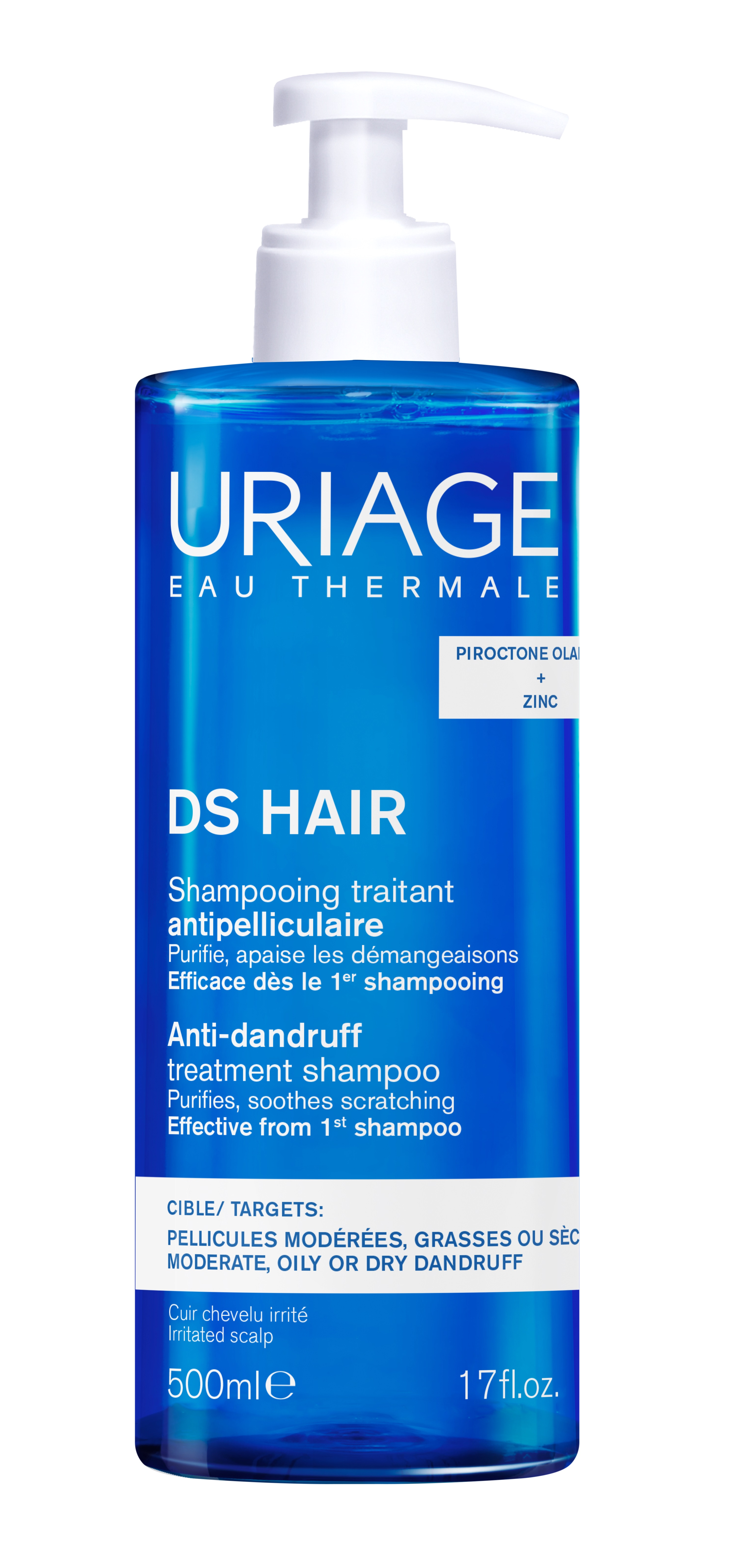 Sampon mérsékelt korpásodás esetére. Egyaránt ajánlott a száraz vagy a zsíros/seborrhoeás fejbőrre. Eltávolítja a korpát, megtisztítja a fejbőrt, megnyugtatja a viszketést.A D.S. HAIR az első olyan haj és fejbőr ápolására kifejlesztett termékcsalád, mely az Uriage termálvíz jótékony hatásainak alkalmazásával készült. Összetett hatású készítmény, mely egyaránt gátolja a korpásodás okait és tüneteit. Pirokton Olamin és Cink-laktát antiszeptikus és faggyúképződést szabályozó kombinációjának köszönhetően egyszerre segít leküzdeni a korpás és/vagy seborrhoeás tünetek fő okozóit, a Malassezia gombákat és gátolja azok ismételt túlszaporodást és a tünetek kiújulását. Szabadalmaztatott TLR-2 Regul komplex, Uriage termálvíz és Havasi gyopár kivonat tartalma megnyugtatja a fejbőrt, enyhíti az irritációt, a viszketést és erősíti, védi a bőrfelületet, így segítve a tünetek gyors enyhülését. Szappanmentes összetétele kíméletesen, a bőr irritációja és kiszárítása nélkül tisztít és alkalmassá teszi száraz, érzékeny fejbőr ápolására is. Rendkívül lágy textúrája puhaságot és fényt ad a hajnak. Kitűnően tolerált bőrgyógyászati formula. Eredmény: a korpa eltűnik, a fejbőr megtisztul és a viszketés megszűnik.Az Uriage bőrápoló készítményeit bőrgyógyászok és gyógyszerészek közreműködésével fejlesztették ki. Hatékonyságuk vizsgálatokkal igazolt.